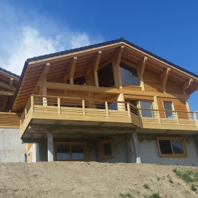 Construction de maisons et chalets poteau/poutre avec parement extérieur fini, assemblé par nos soins dans nos ateliers.